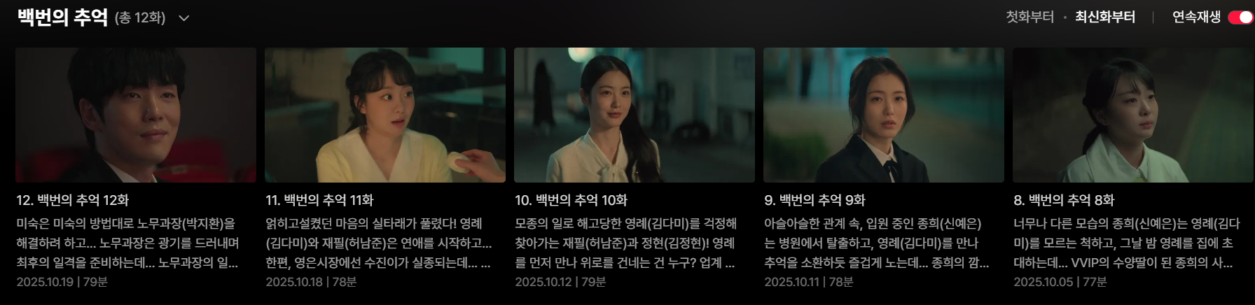 현재 ‘백번의 추억’은 아직 후속작 제작이 공식 발표되지는 않았지만, 반응이 좋아 스핀오프나 시즌2 가능성도 조심스레 점쳐지고 있습니다.