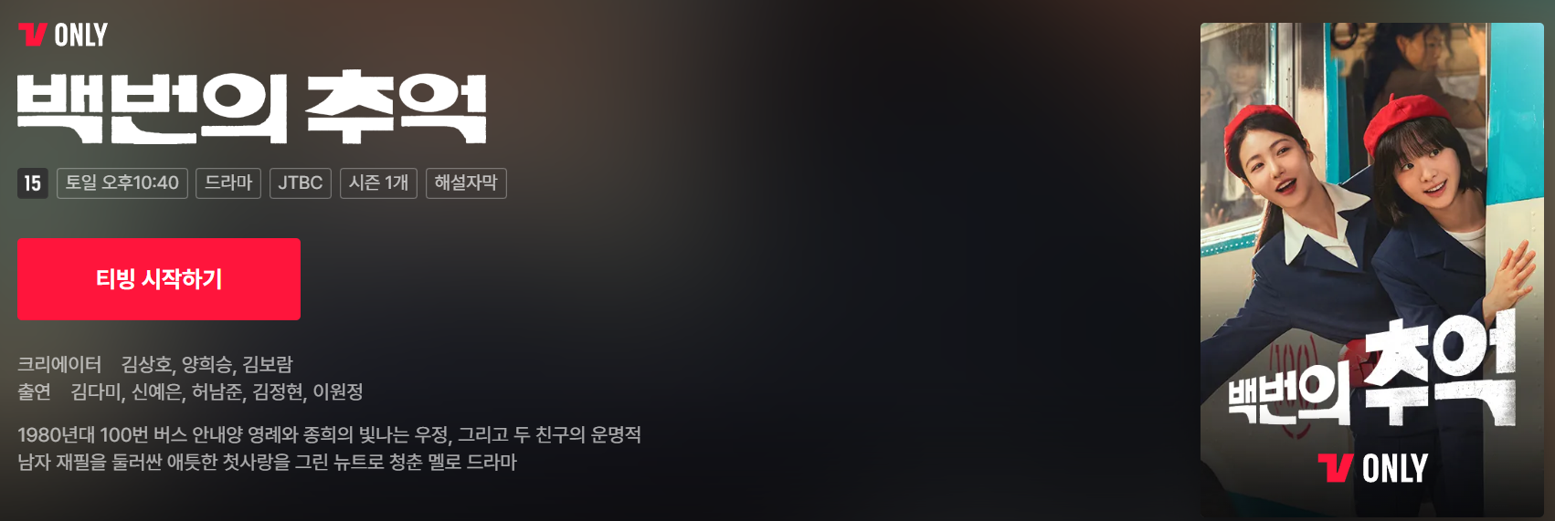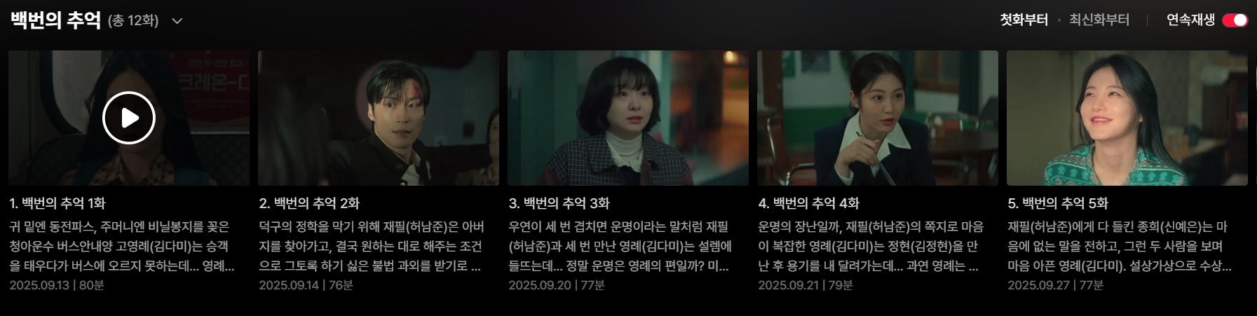 드라마를 놓쳤다면 다시보기는 필수겠죠! 현재 ‘백번의 추억’은 몇가지 OTT 플랫폼을 통해 시청할 수 있습니다.