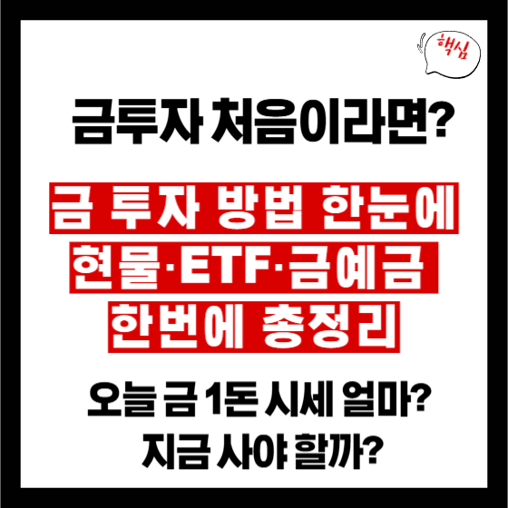 📌 금투자 초보자라면 금통장으로 소액부터 시작, 이후 경험이 쌓이면 금 ETF나 KRX 금시장을 활용하는 것을 추천드립니다.