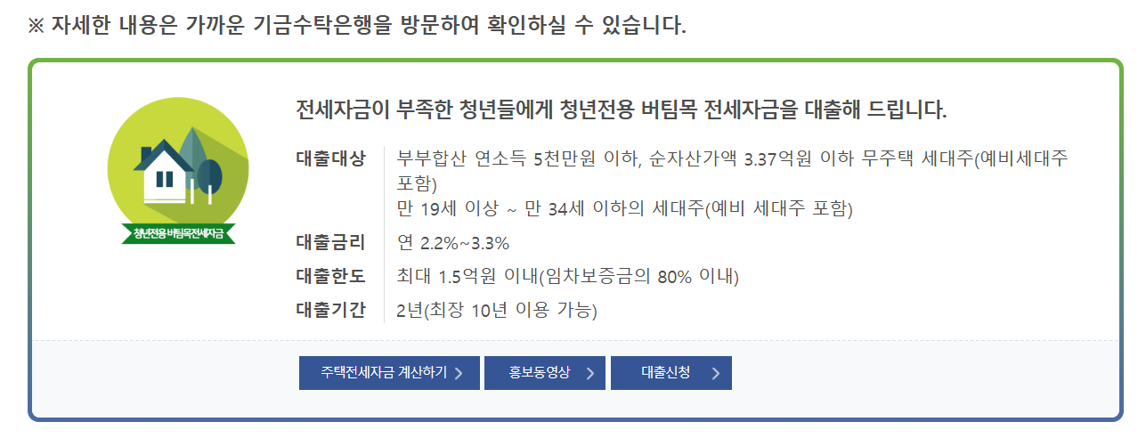 - 대출 심사 관련한 상담은 주택도시보증공사 콜센터 1566-9009 및 기금 수탁은행 지점에서 가능합니다.