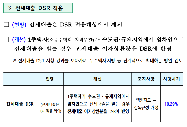 2025년 10월 29일부터 전세대출에도 DSR이 반영됩니다.