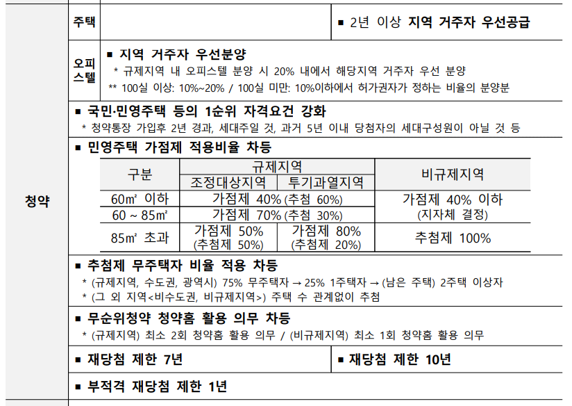 - 1순위 요건 강화: 거주기간·무주택 기간 요건 상향