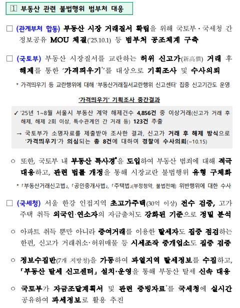 정부는 부동산 거래 질서 확립을 위해 갭투자, 허위 거래, 자금세탁 등을 집중 단속합니다.