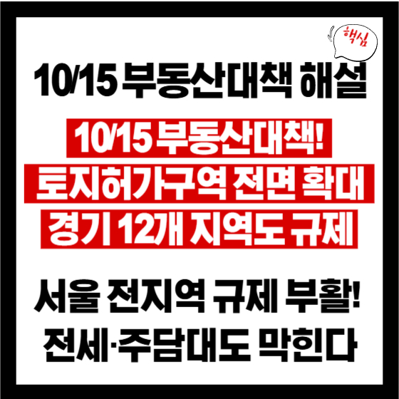 2025년 10월 15일, 정부는 주택시장 안정화를 위한 전방위적 규제 강화 정책을 발표했습니다.