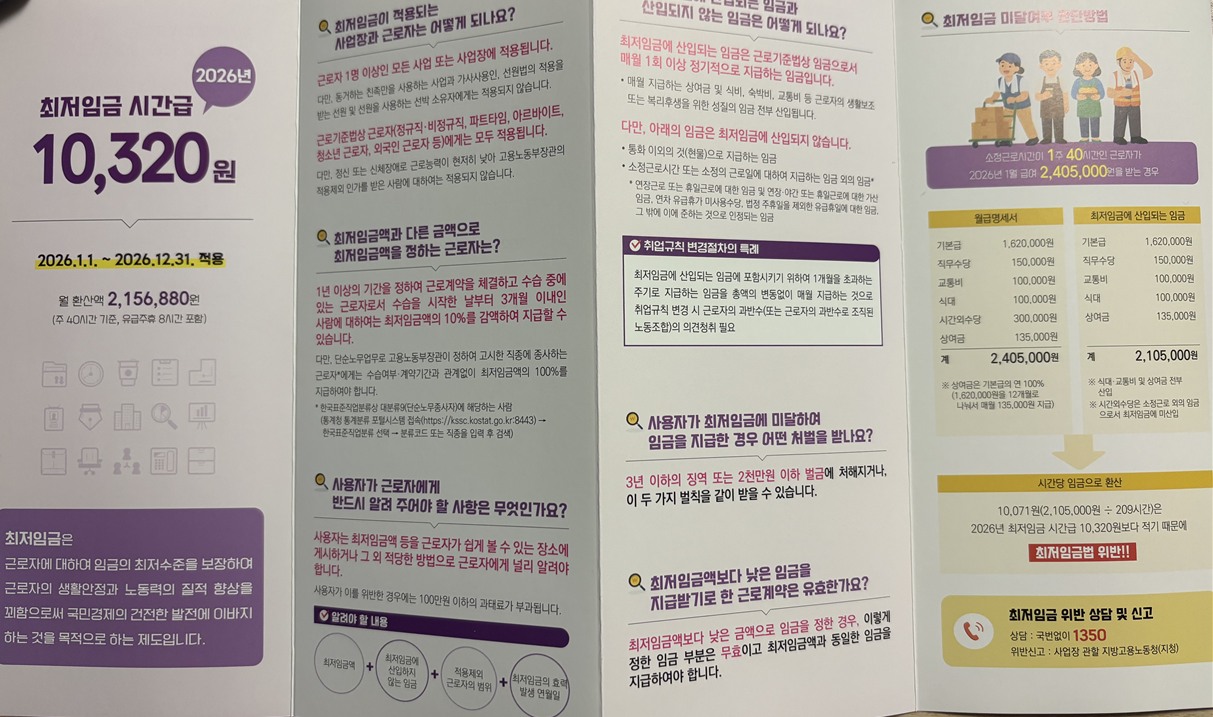 2026년 최저임금이 시급 10,320원으로 확정됐습니다.
