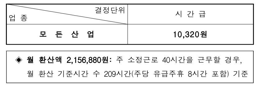 | 월급 기준 | 2,156,880원 (209시간 기준) |